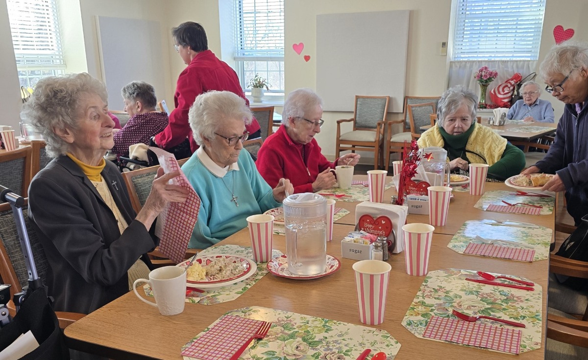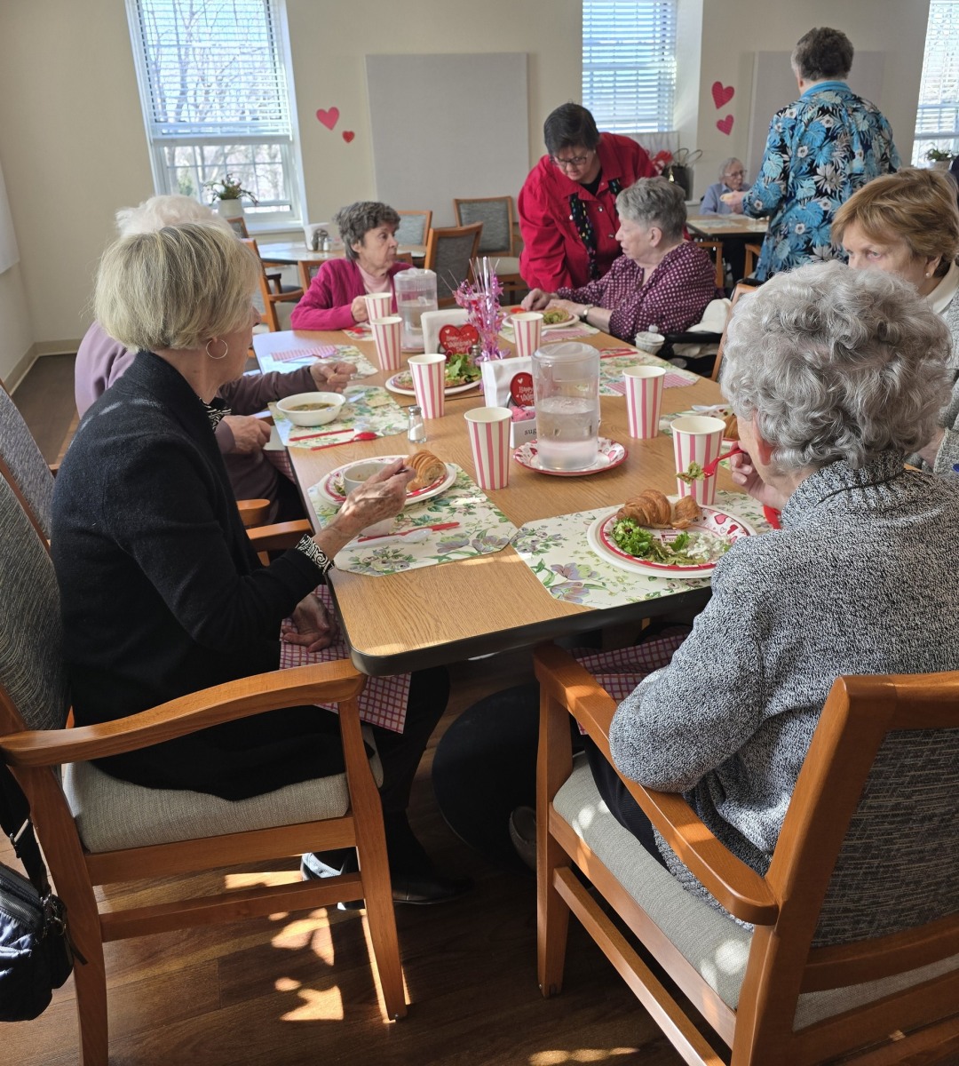 Following the session, the Sisters came together in the dining room for a festive Valentine’s Day luncheon. Lourdes and her team, as always, created a warm and welcoming atmosphere with beautifully decorated tables that reflected the joy and spirit of the day.